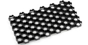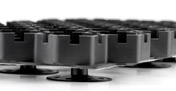 The grassroof system combines the functions of both a paving and a drainage layer. The LS/1 leg supports are simply bonded to the roof membrane to create a gap to the underside of the paver. With the GRF/1 type this gap is infilled with a lightweight aggregate filter media. For the GRF/2 type the bonded geo-textile to the underside of each unit creates a micro-porous barrier that holds the soil in place but allows water to percolate into a voided drainage waterway below. This enables percolating water to be drained or collected as part of a rainwater harvesting process.